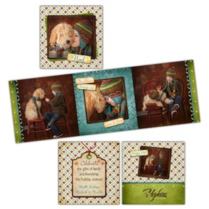 - 8 Christmas card templates (5) 5x7 folded, (1) 5x5 folded, (1) 5x5 trifold, (1) 5x7 wide format