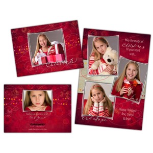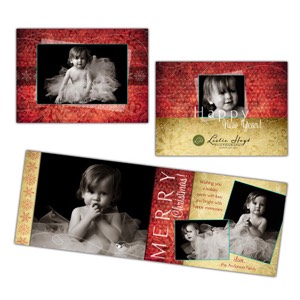 - 10 Christmas card templates (5) 5x7 folded, (1) 5x7 wide format, (1) 5x5 folded, (2) 5x5 trifold